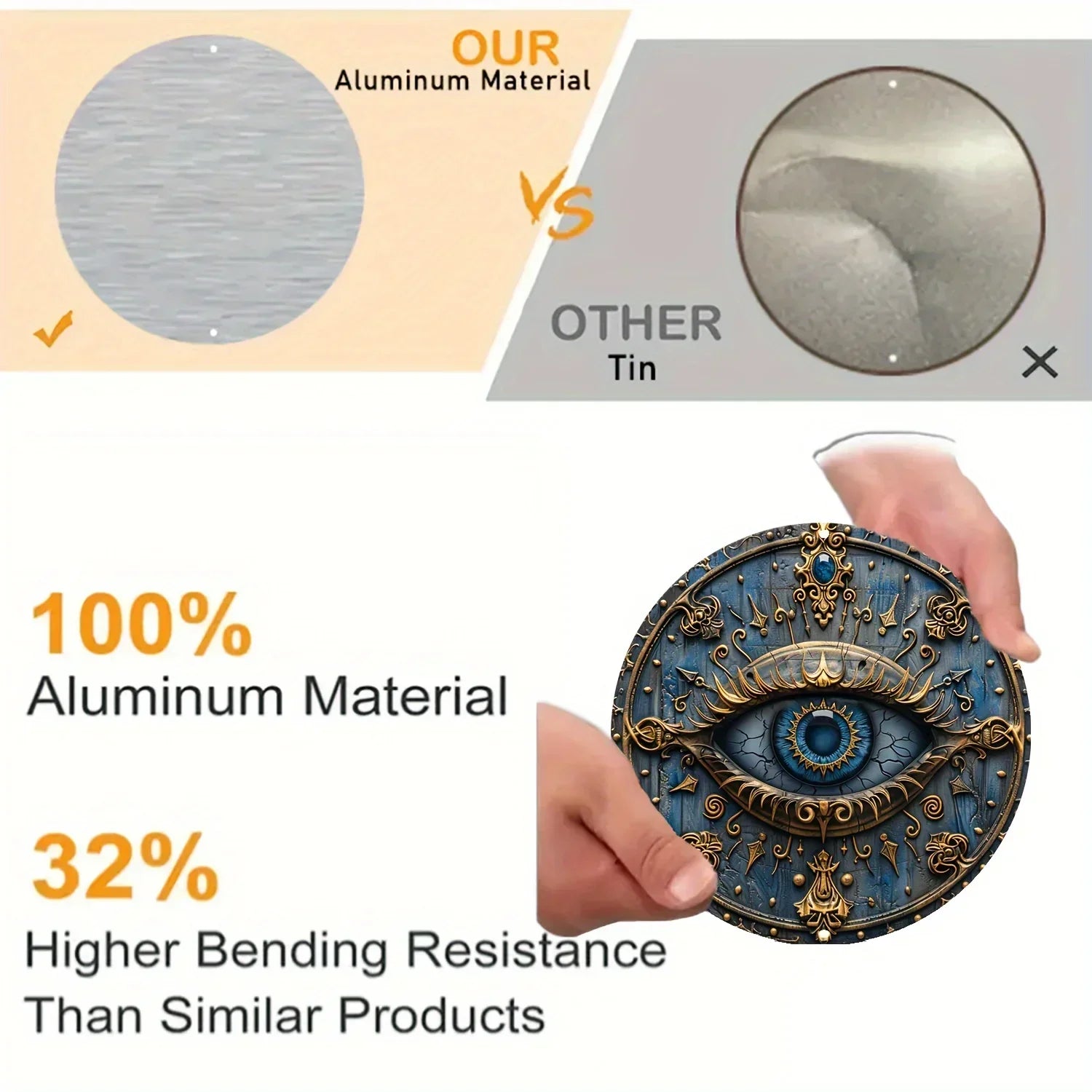 Made of 100% aluminum, this extraordinary decorative piece featuring an evil eye is a powerful symbol of protection. The intricate details and bold design make it a captivating focal point, believed to bring peace and ward off negative energies, while adding a touch of modern style to your space.